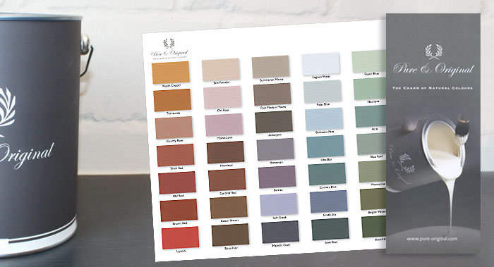 Farbkarte von "Pure and Original" mit orginal Farben von Hand aufgetragen.